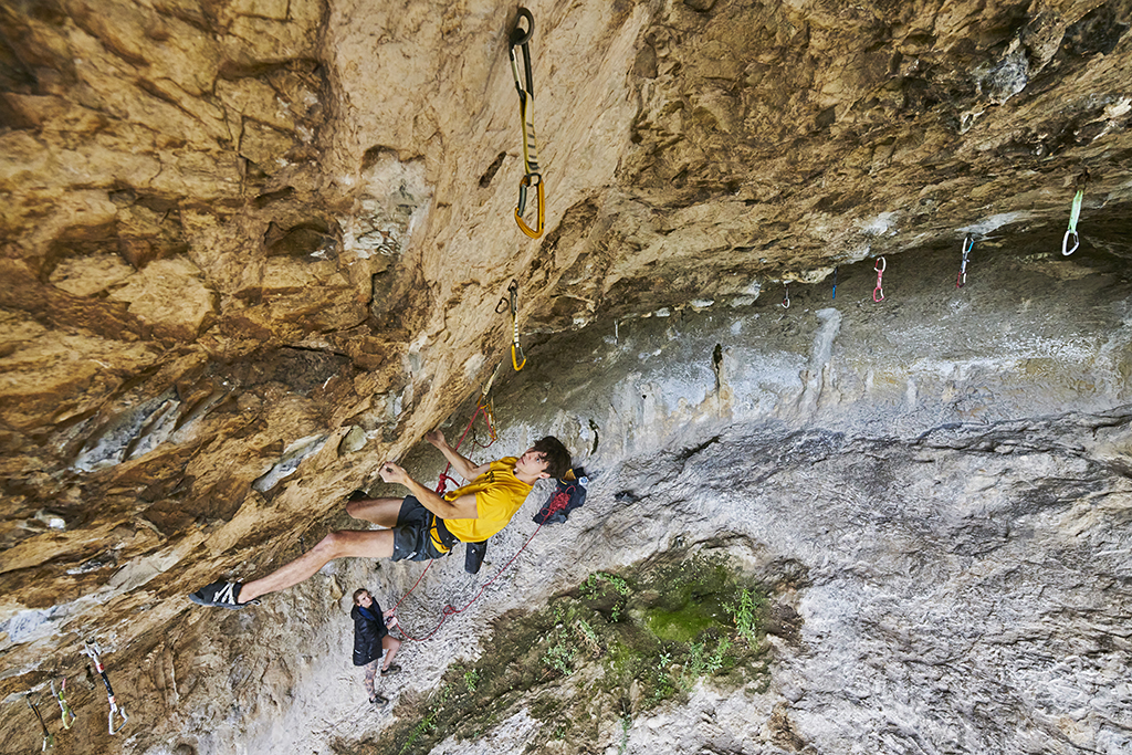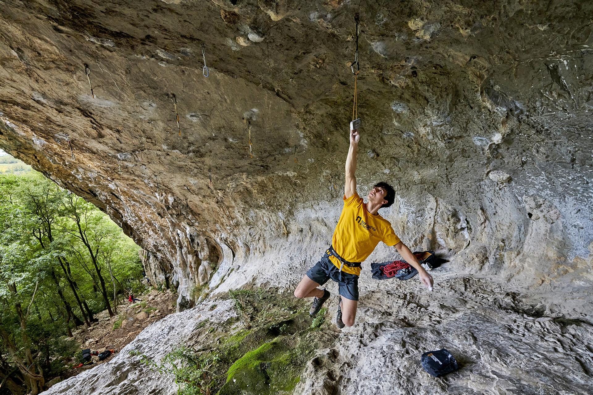 For its grade of 8c+, the route is relatively strict. That is why even after more than 30 years it has seen only around 11 ascents. In terms of character, it is a very intense power-endurance climb with poor footholds, an uncomfortable rest, followed by a physical sequence on a series of underclings. At the same time, the route is very demanding in terms of technique and precise execution.