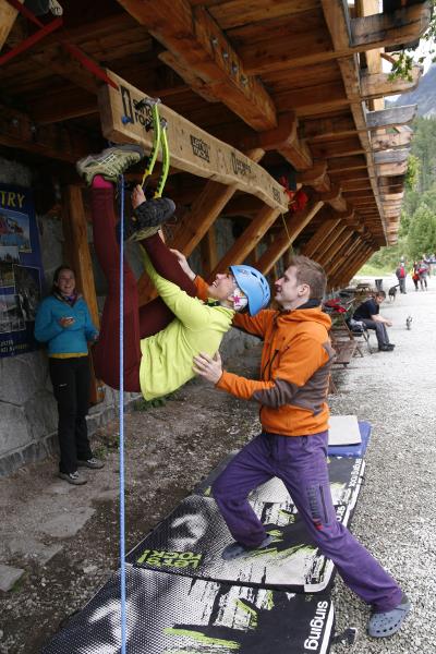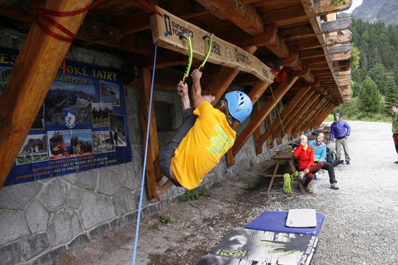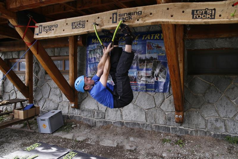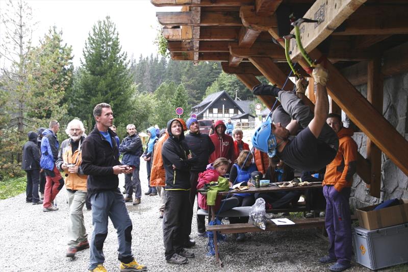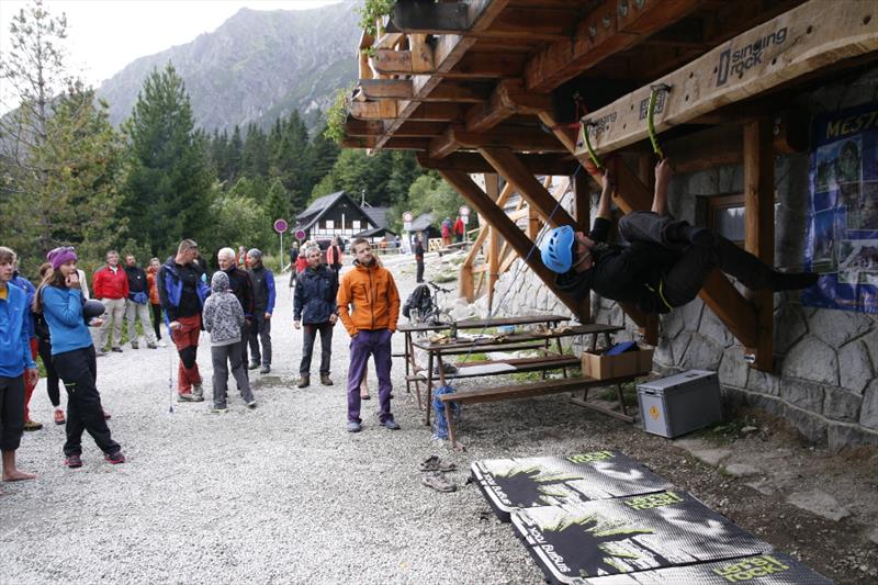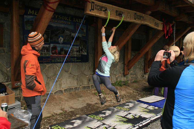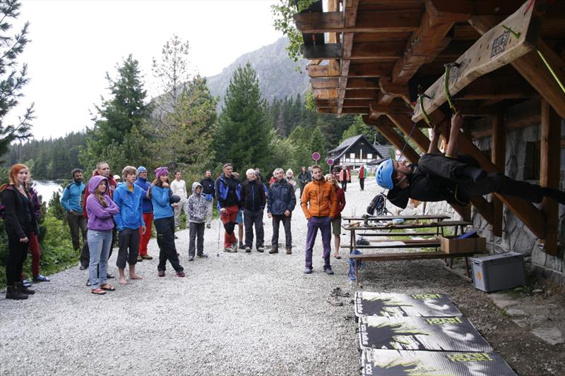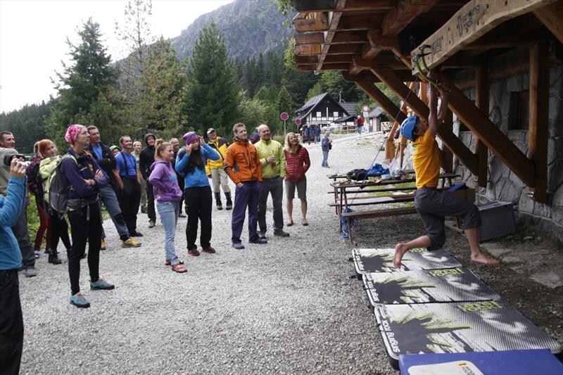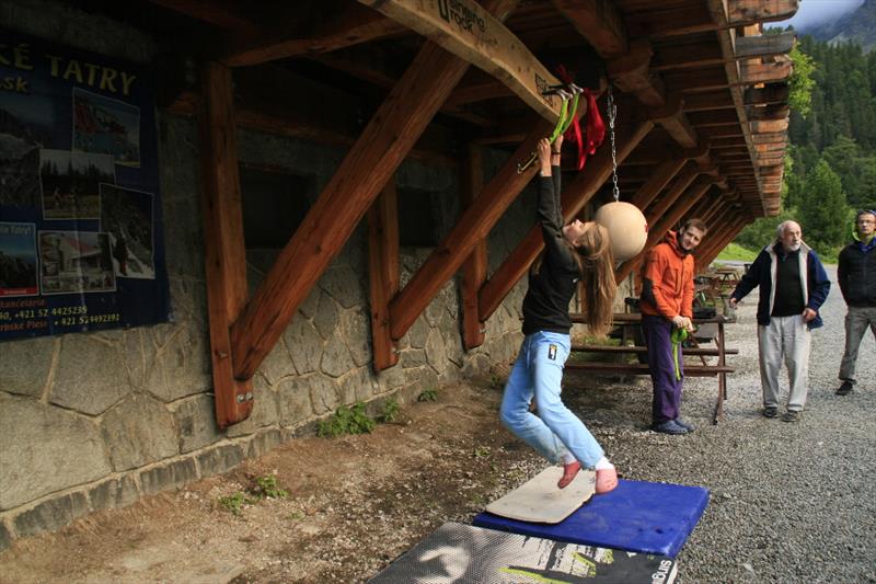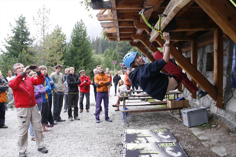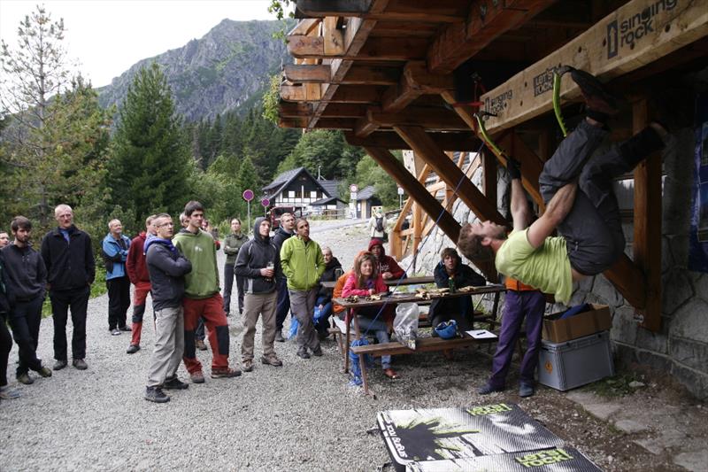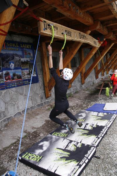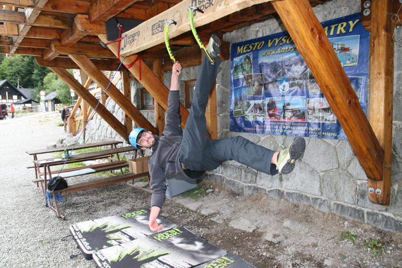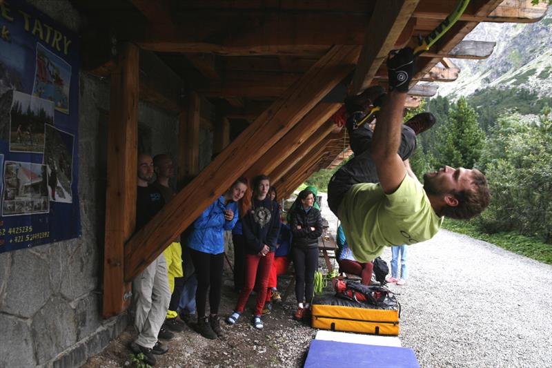 The contest was quite simple, we counted who can make it forth and back on a 3.2 m long board with holes for ice axes. It was interesting to watch how individual competitors opted for different tactics. Some of them only made their way with pull-ups, some were unable to hit the drilled holes, so they cut their own hole in the board, some tried a “bat”, and someone’s legs and hands got really entangled. But everyone tried really hard and despite initial technical problems they fought for the main prize, a couple of Bandit ice axes for mix and ice.