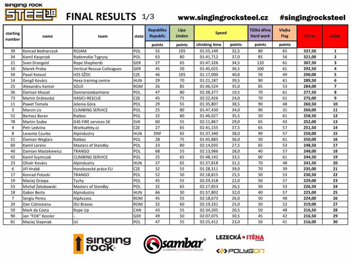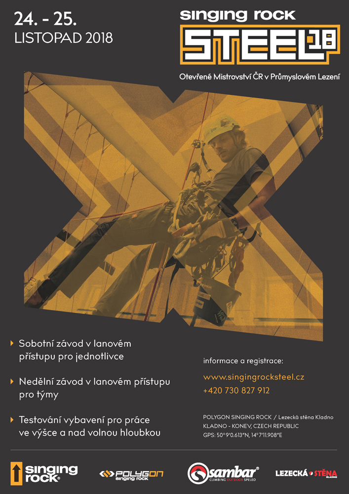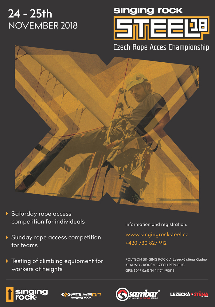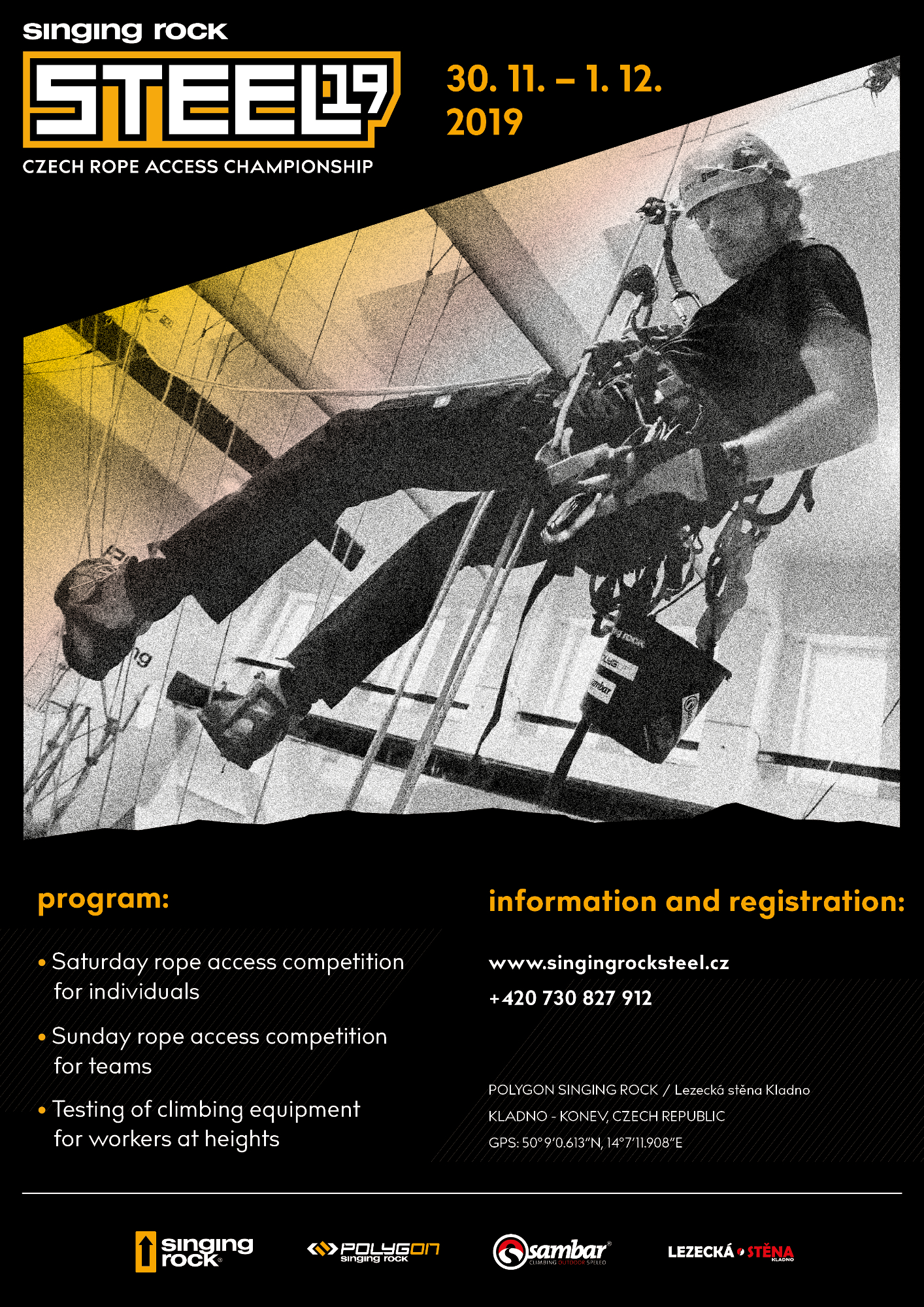 Singing Rock STEEL is an unique rope access competition. It provides a great opportunity for workers at height, firemen, rescuers, speleologist and also experienced amateurs to compare their strengths and skills. Singing Rock STEEL is one of the biggest contests of this kind in Europe and the only one in the Czech Republic and contestants come from many different countries. The competition will take place at training facilities for rope access technicians Polygon Singing Rock and a climbing gym attached to it, in industrial part of town Kladno (25km from Prague).
