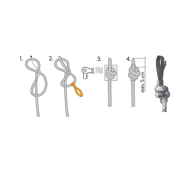 • one end of the rope is ended by a sewed eye, the 2nd one must be ended by a safety knot (see instructions of use)