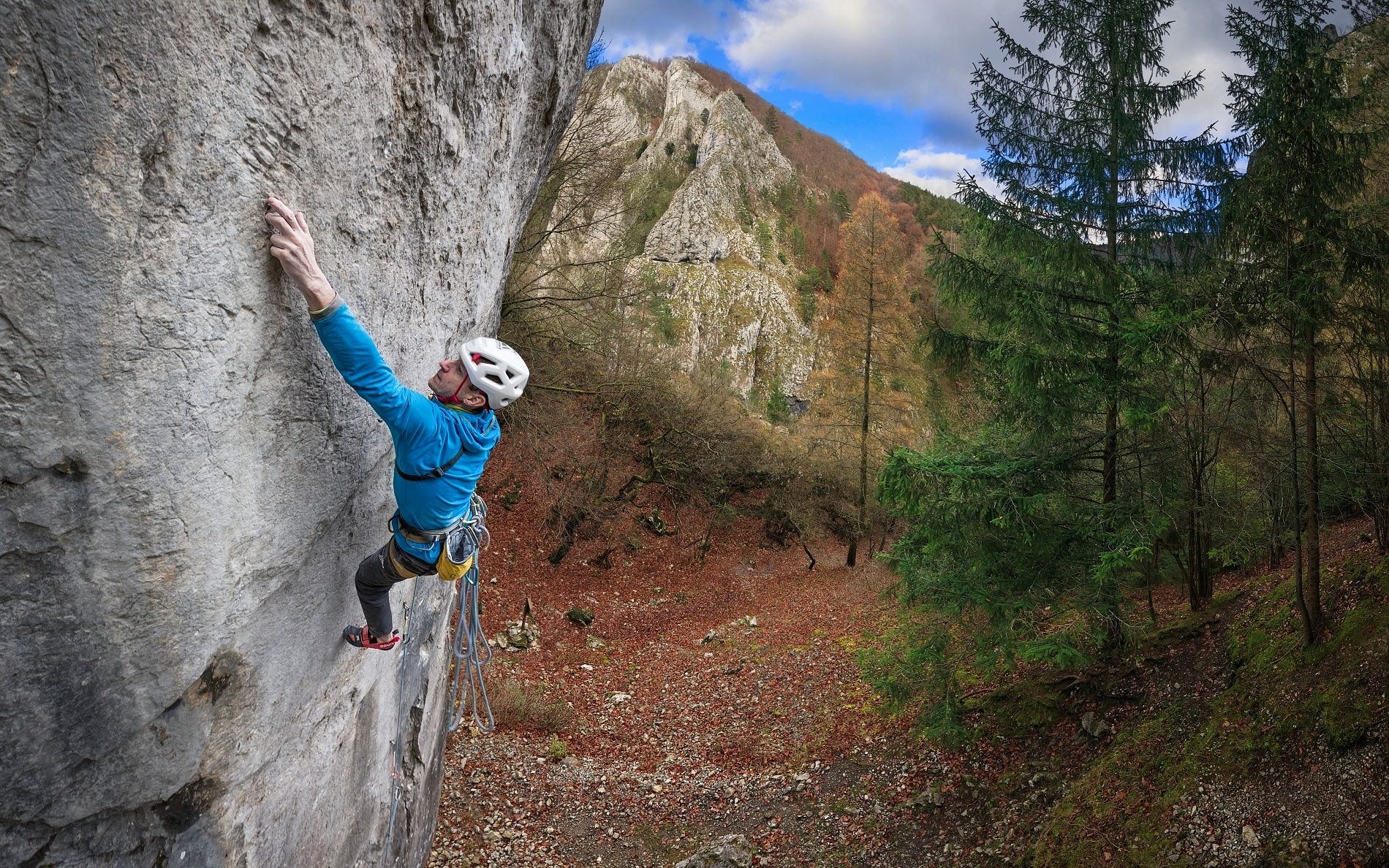 Cut. The first rocks I touched after the injury were a line on Malý Kežmarský štít on second, but only thanks to an e‑bike approach. On the second visit I was already swinging leads with Martin (we both climbed the crux pitches), and on the third I gave myself a mental test and climbed the Superdiretissima as a roped solo. So my head was ready, but my body wasn’t, and there was a risk I would once again miss out on those autumn conditions. Mentally, it was challenging for three reasons. First, my heel/ankle was still sensitive, and the falls were quite unpleasant (both physically and mentally). Second, I was physically ready with a reserve, but when LRS climbing, it often ends up with the rope stuck in the belay device or in backup knot in the wrong place, etc. etc. – meaning it didn’t depend only on me. And the third, less obvious reason was that it would have meant surpassing my previously highest climbing grade. Consciously, it didn't hold me back, but who knows how big a role it played subconsciously in combination with the previous reasons.