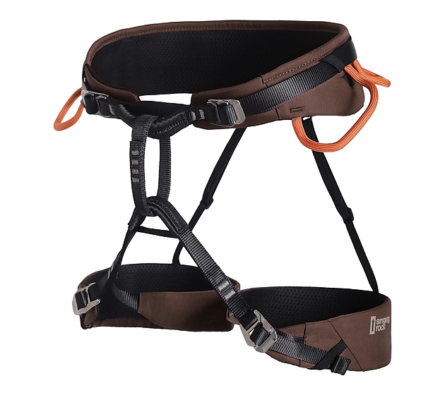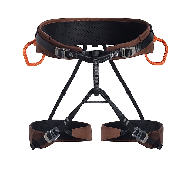 • well thought-out design of the waist belt and leg loops, which uses 2 webbings running along the sides of the padding, distributes the load efficiently and ensures greater comfort when sitting or hanging in the harness