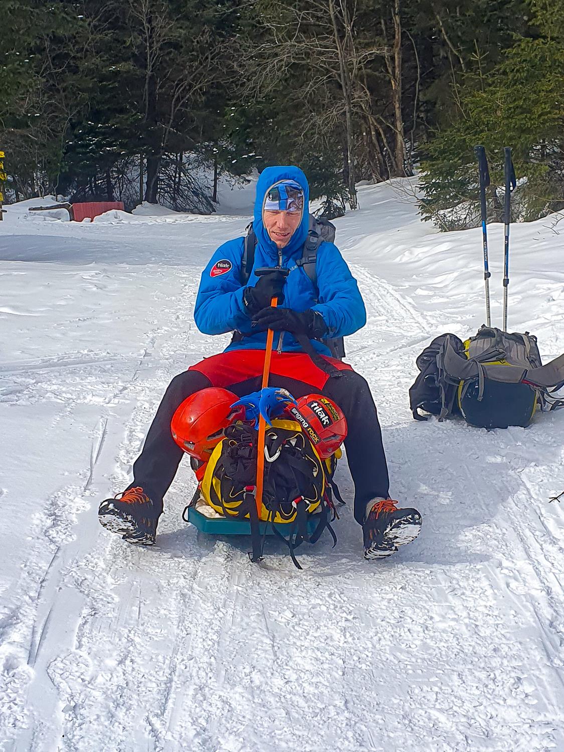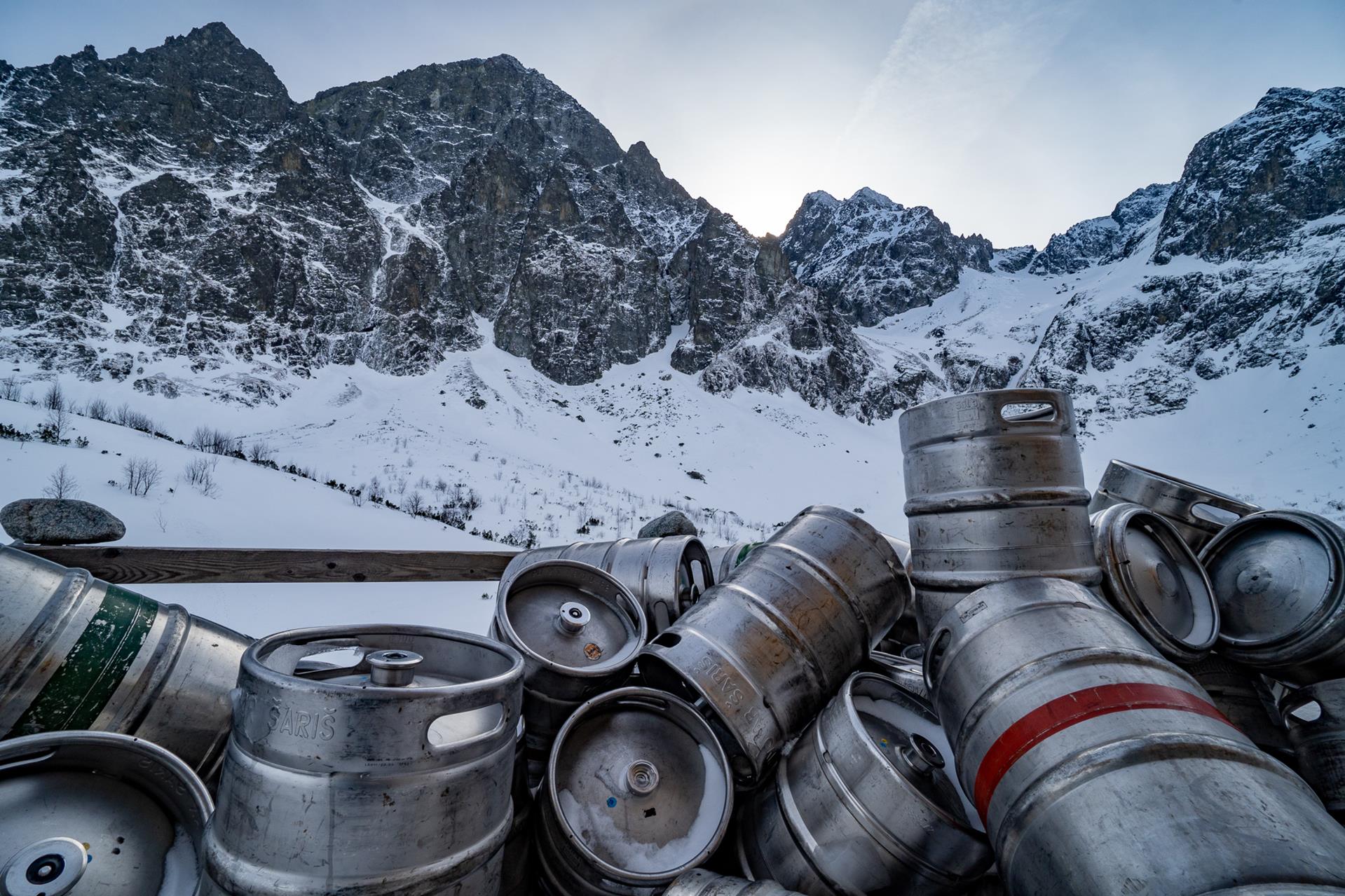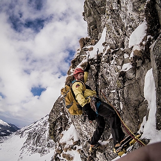 The north face of the Little Kežmarok Peak is a frequent playground for winter Tatra climbing. Not far from the chalet Chata pri Zelenom plese, the 800-metre wall is rising, but most of the routes lead only halfway up, either to the ridge or to a slanting footbridge crossing the north face diagonally and separating the steep lower part from the more exposed upper half. In the right part of the wall, directly below the edge of the northwest ridge, there is an overhanging 80-metre triangular wall resembling the shape of an animal's ear, which gave it its name - the Ušatá stráž.