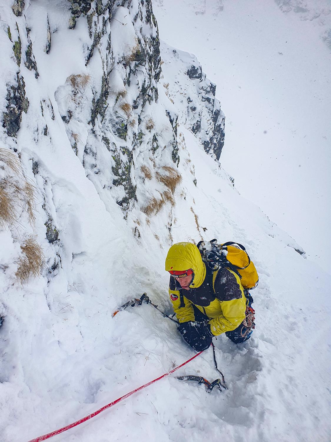 Stoupa and Baca finished free winter ascent of the route Rybička - Šmíd - Svobodová (1976) to Ušatá stráž (Eared Guard) in the north face of the Little Kežmarok Peak.